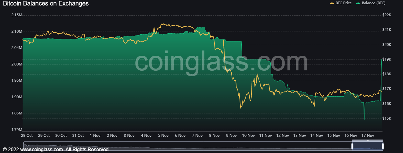 Jumlah BTC kemudian kembali mengalami lonjakan pada 18 November hari ini, setelah Binance mencatat masuknya 88.105,99 BTC dalam 24 jam terakhir.