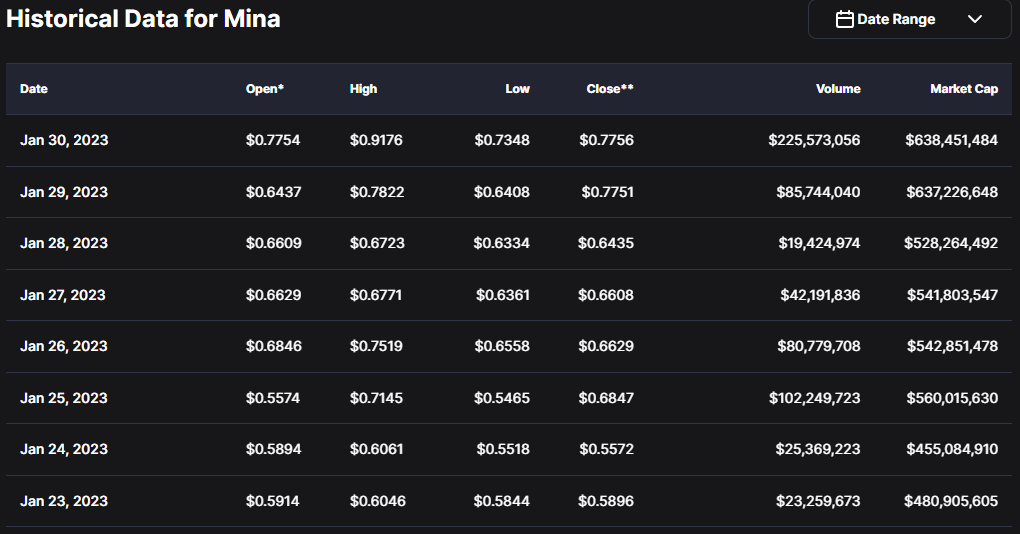 Terjadi unsuall activity pada penutupan volume perdagangan MINA pada 30 Januari yang tercatat ditutup pada level $225.573.056. Nilai tersebut meningkat hampir tiga kali lipat dibanding penutupan pada hari sebelumnya, 29 Januari, yang hanya ditutup pada level $85.744.040.