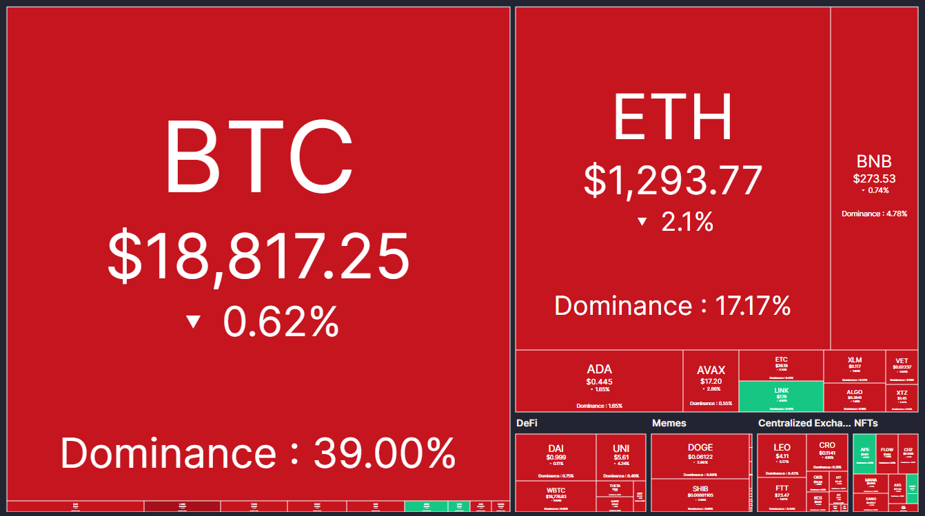 Portalkripto.com- Pasar kripto pagi ini kembali memerah setelah beberapa coin major mengalami penurunan. Bitcoin (BTC) sebagai aset kripto dengan kapitalisasi terbesar ditutup dengan penurunan sebesar 3,14%, diikuti oleh ETH yang melanjutkan trend negatifnya dengan penurunan sebesar 2,98%.