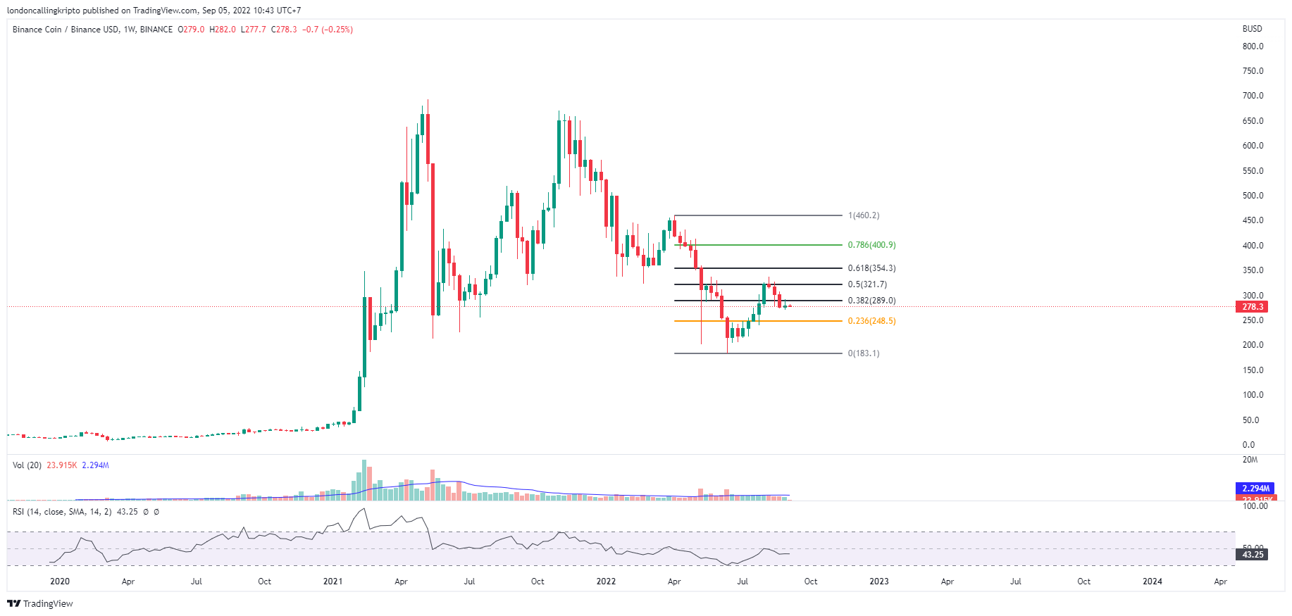 BNB/BUSD weekly chart Binance. Source: TradingView. By: Arli Fauzi
