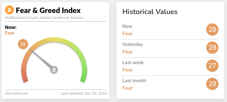 Sentimen pasar kirpto konsisten stabil. Belum adanya pergerakan impulsif Bitcoin menjadi faktor utama laju sideways fear and greed index. F&G Index kembali ditutup pada level 28, dengan kategori fear.