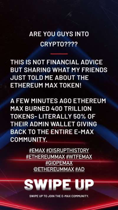 Lebih mengejutkan lagi, Kim mempromosikan sebuah token yang mungkin belum banyak orang yang mendengarnya, yakni Ethereum Max. Dalam storynya tersebut ia mengatakan, bahwa EMAX baru saja dibakar sebanyak 400 triliun koin atau separuh dari total suplaynya.