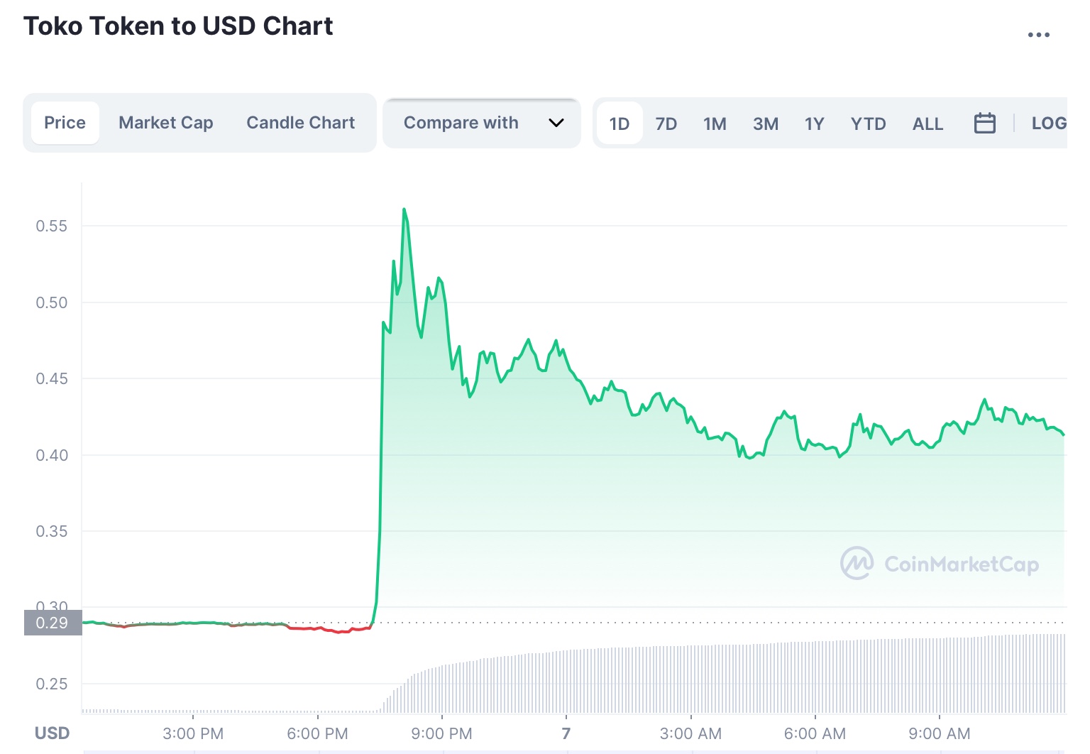 Pergerakan harga TKO dalam 24 jam terakhir. (Sumber: CoinMarketCap)