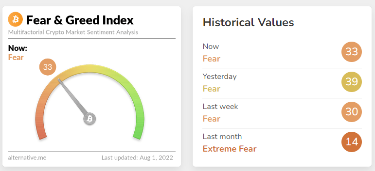 Tetapi terjadi pembalikan di bulan Juli ini, terlihat fear and greed index perlahan mengalami kenaikan hingga berada di atas level 30 dan sempat mencapai level 42 pada 30 Juli 2022. Meskipun masih dalam kategori fear, tetapi terlihat adanya recovery terhadap market kripto, yang tentu saja kondisi tersebut berpengaruh positif bagi pergerakan harga aset kripto.