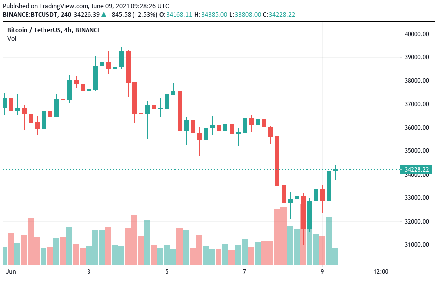 Portalkripto.com– Keputusan kongres El Savador yang sahkan Bitcoin sebagai alat pembayaran yang resmi di negara tersebut direspon cukup baik oleh pasar cryptocurrency, pada perdagangan hari ini, Rabu, 9 Mei 2021. Harga Bitcoin pun merangkak naik menuju US$ 35 ribu, setelah sebelumnya hampir anjlok ke harga US$ 30 ribu.