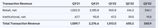 Pendapatan transaksi Coinbase. (sumber: Shareholder Letter Coinbase Q3 2022)