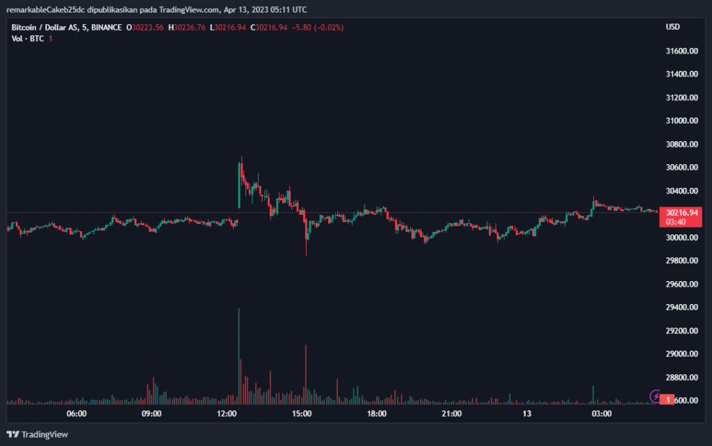 Data inflasi yang mendingin ini direspon positif oleh investor Bitcoin. Harga Bitcoin sempat terkerek bergerak naik $400 dari $30.017 ke kisaran $30.438 sebelum kemudian turun kembali. Data CPI yang di bawah prediksi, biasanya akan direspon positif aset kripto lantaran pelaku pasar mengharapkan kebijakan kenaikan suku bunga The Fed tidak akan terlalu agresif atau bahkan melandai.