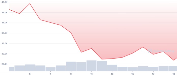 Grafik harga Bitcoin seteleh FOMC 16 Juni (CoinMarketCap)