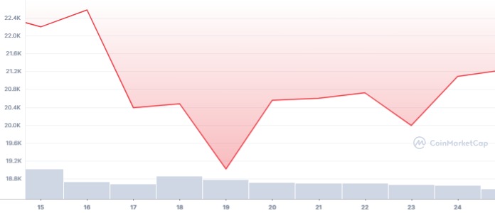 Dalam sepekan terakhir, pasar kripto terpantau cenderung menghijau. Harga Bitcoin yang selama dua bulan terakhir sideways di kisaran $18.000-$20.000, nampak sedang on the track menembus ambang batas psikologis harga jual di angka $20.000 menuju $21.000.