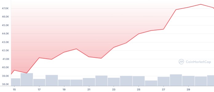 Grafik harga Bitcoin seteleh FOMC 27 Juli (CoinMarketCap)