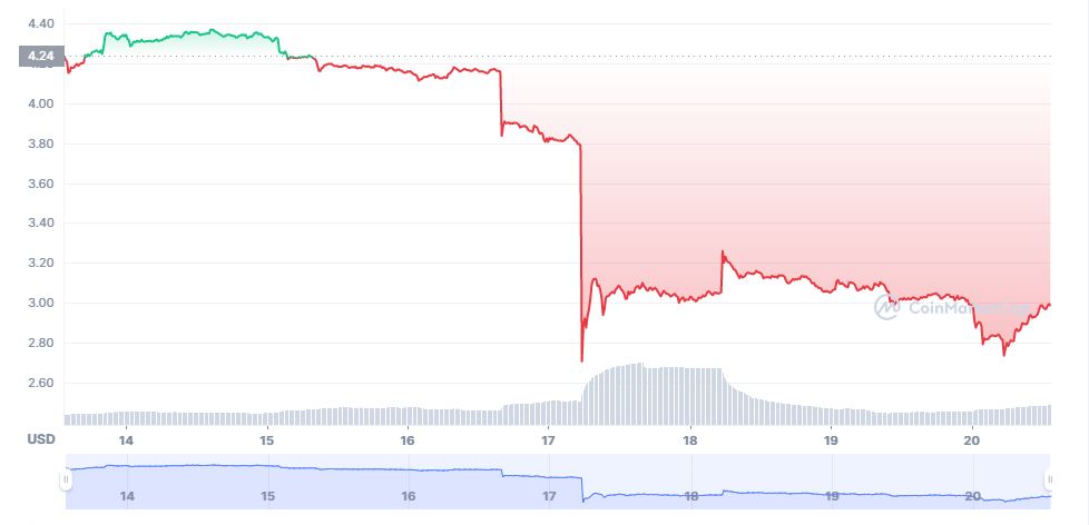 Grafik harga Filecoin 7 hari terakhir (CoinMarketCap).