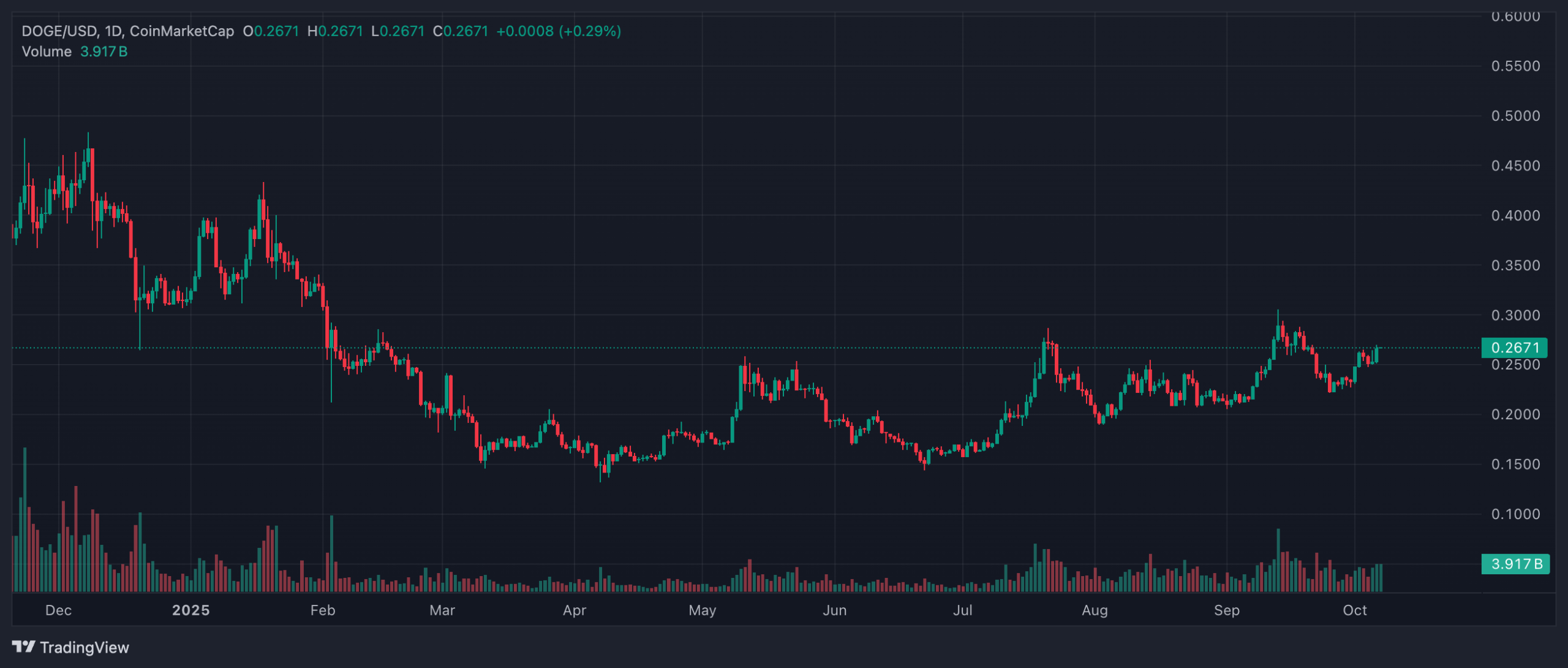 Pada perdagangan hari ini, Selasa, 7 Oktober 2025, DOGE mencatat kenaikan lebih 15% dalam 2 hari perdagangan.