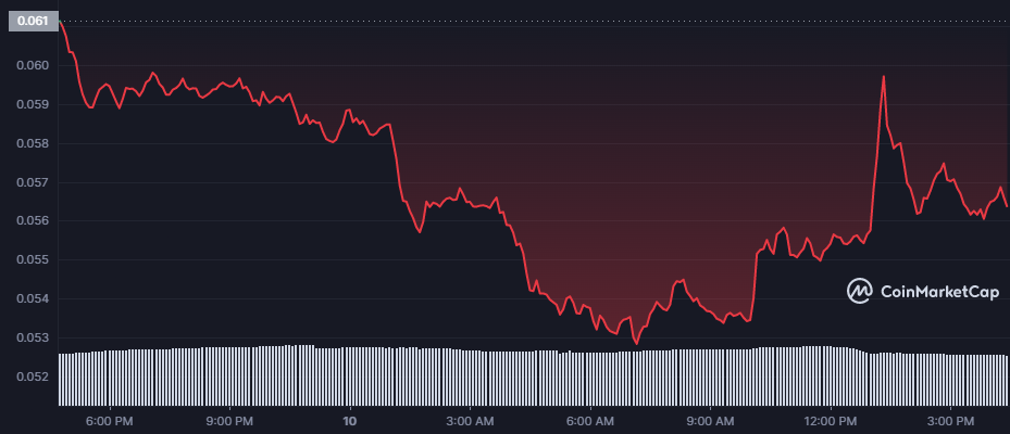 Pada saat penulisan harga TRON turun 8,22% dalam 24 jam terakhir menjadi $0,05622 menurut Coinmarketcap.