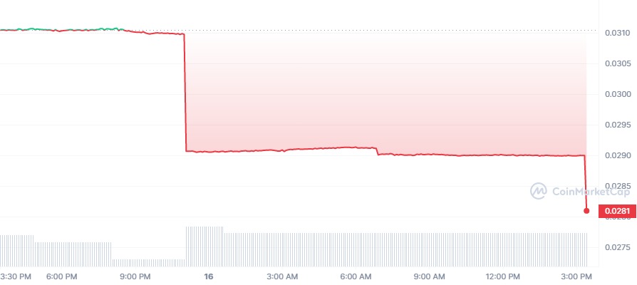 Token asli Shibariun, BONE, juga menurun hingga 7% dalam sehari terakhir. Kini BONE diperdagangkan di harga 0,02809.