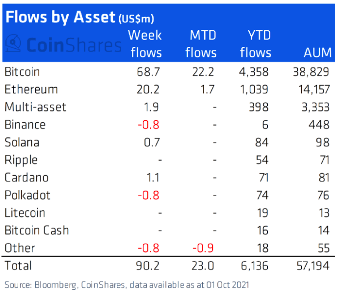 Sementara itu, total arus masuk untuk produk investasi digital keseluruhan sebesar $90 juta untuk minggu ini. Arus masuk tersebut menandai peningkatan eksposur terhadap aset digital.