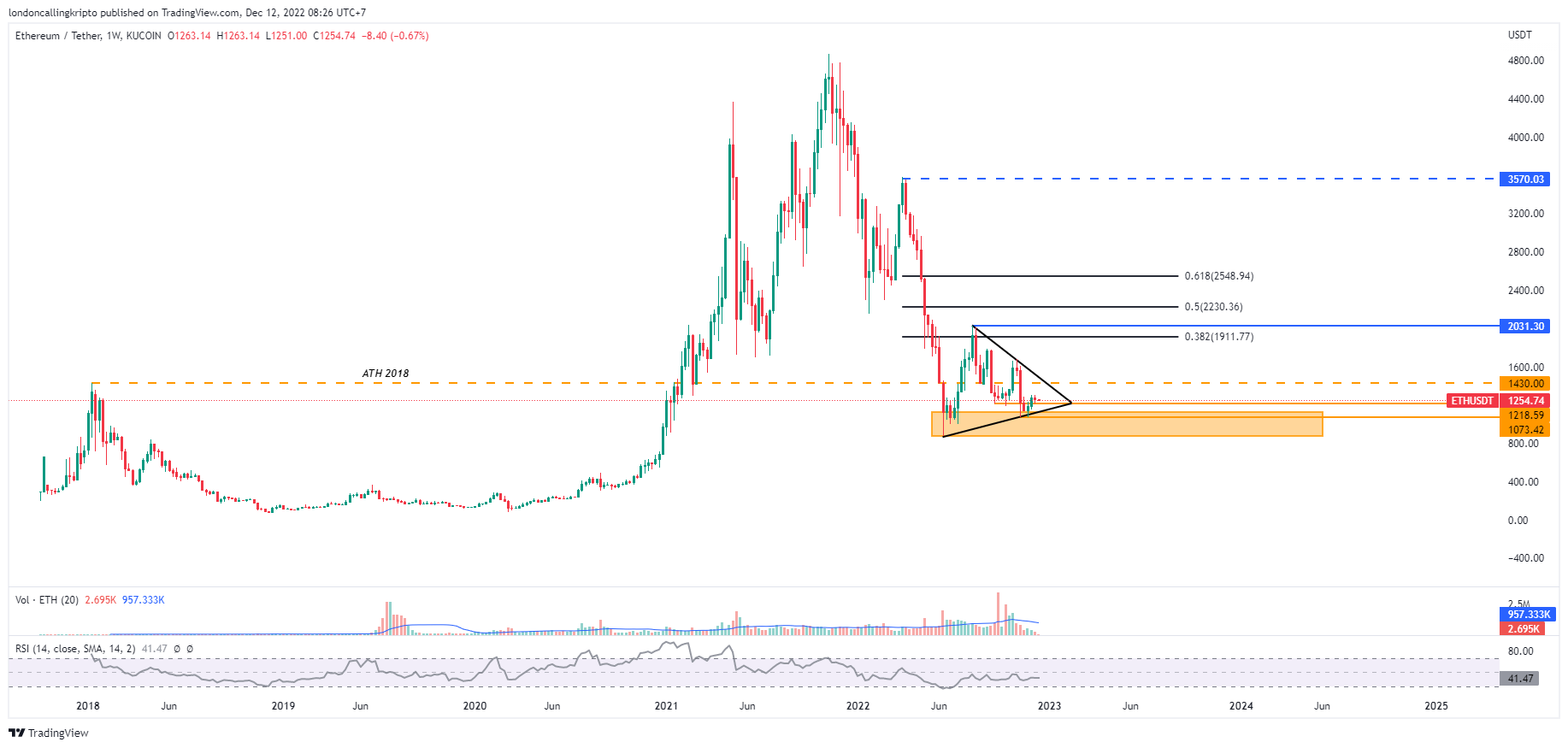Harga tertinggi pada tahun 2018 di level $1.428 masih menjadi target naik utama ETH saat ini.