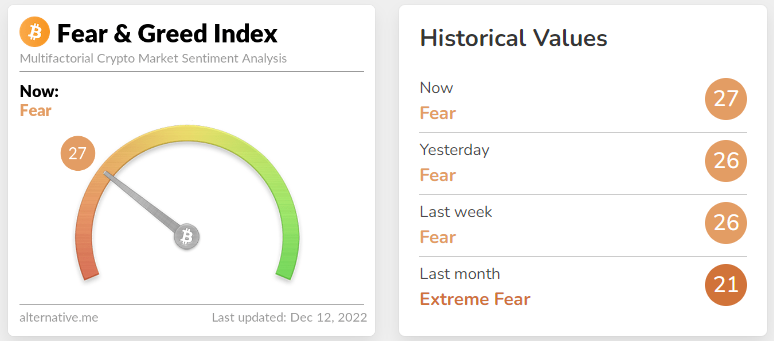 Pelaku pasar kripto masih hara-harap cemas menunggu pergerakan impulsif dari Bitcoin dan altcoin. Fear and greed index ditutup pada level 27, dengan kategori fear.