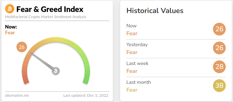 Sentimen pasar kripto masih stabil setelah ditutup pada level 26 dengan kategori fear, selisih dua poin dengan minggu lalu yang berada pada level 28.