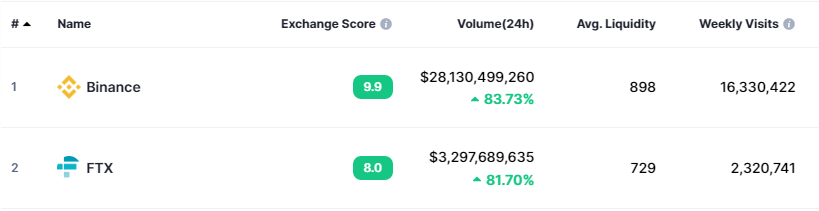 Pada 2022, FTX resmi menjadi exchange terbesar kedua di dunia, tepat di bawah Binance, meskipun volume perdagangannya masih 10 kali lebih rendah.