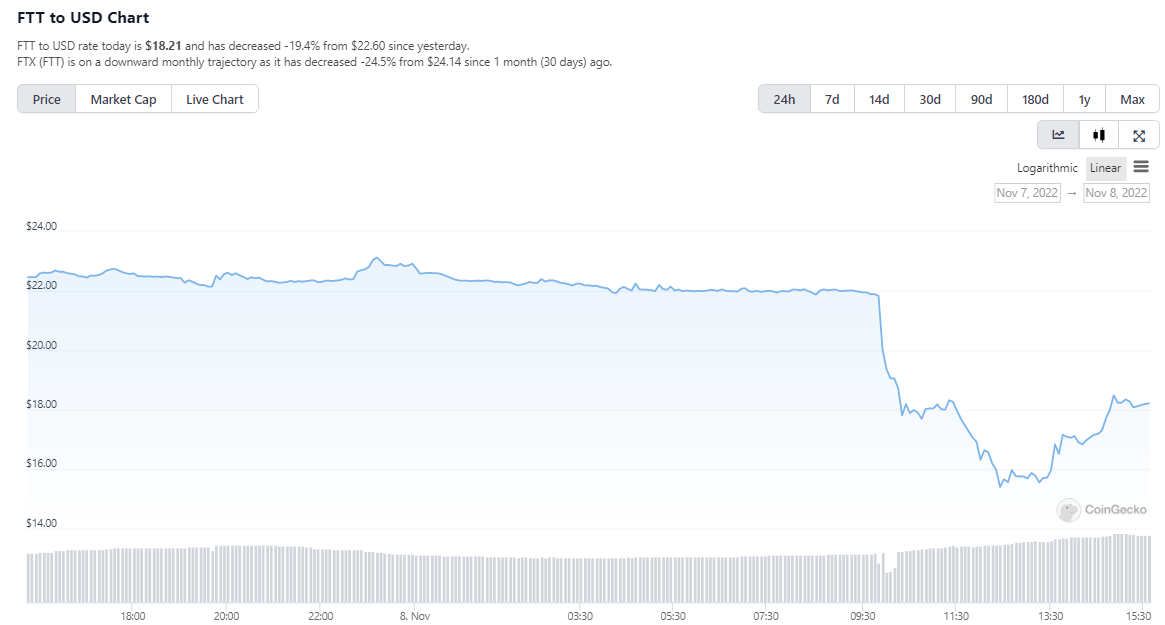 Nilai FTT merosot tajam. Investor lain bahkan ikut berbondong-bondong menarik asetnya dari exchange FTX.