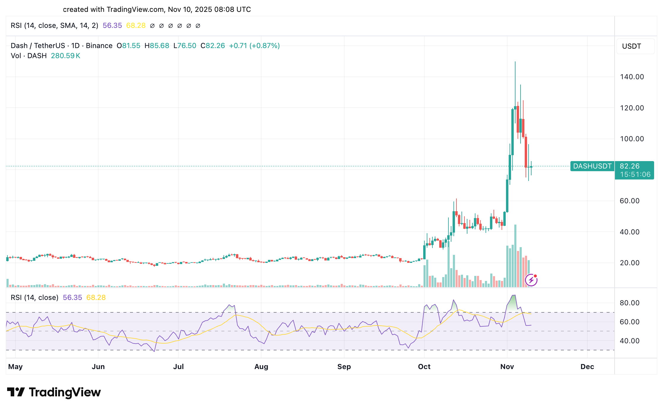 Token privasi lain, Dash (DASH), melonjak lebih dari 130% setelah peluncuran perdagangan perpetual futures di Aster DEX. Sementara itu, ZKsync (ZK) — protokol layer 2 Ethereum berbasis zero-knowledge rollups — naik lebih dari 113% dan berpotensi mengalami perubahan besar pada sistem tata kelolanya.
