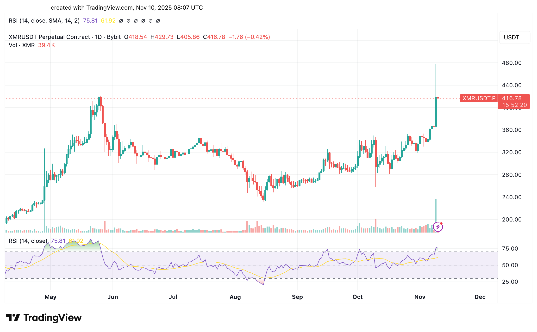 Monero, yang dikenal dengan sistem privasi transaksinya, mencatat kenaikan harga sekitar 10% dan kapitalisasi pasar naik 2,7% menjadi $6,62 miliar.