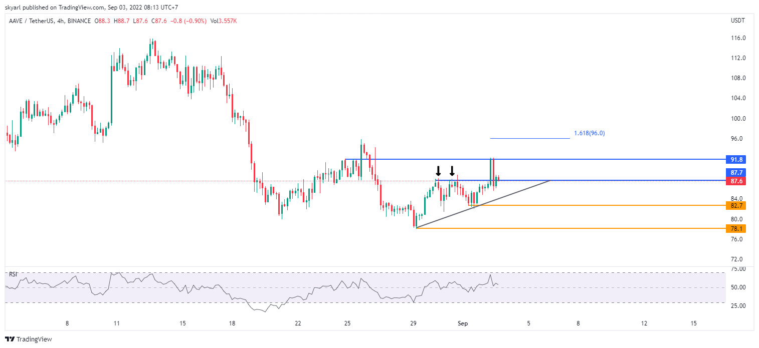Apabila laju naik masih didukung aksi beli yang tinggi, kemungkinan harga AAVE akan kembali naik mencapai level $91,8 pada weekend ini.