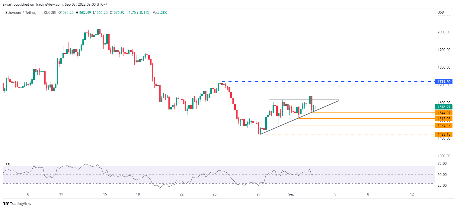 Support terdekat ETH berada pada level $1.544 dan support selanjutnya berada di level $1.512.