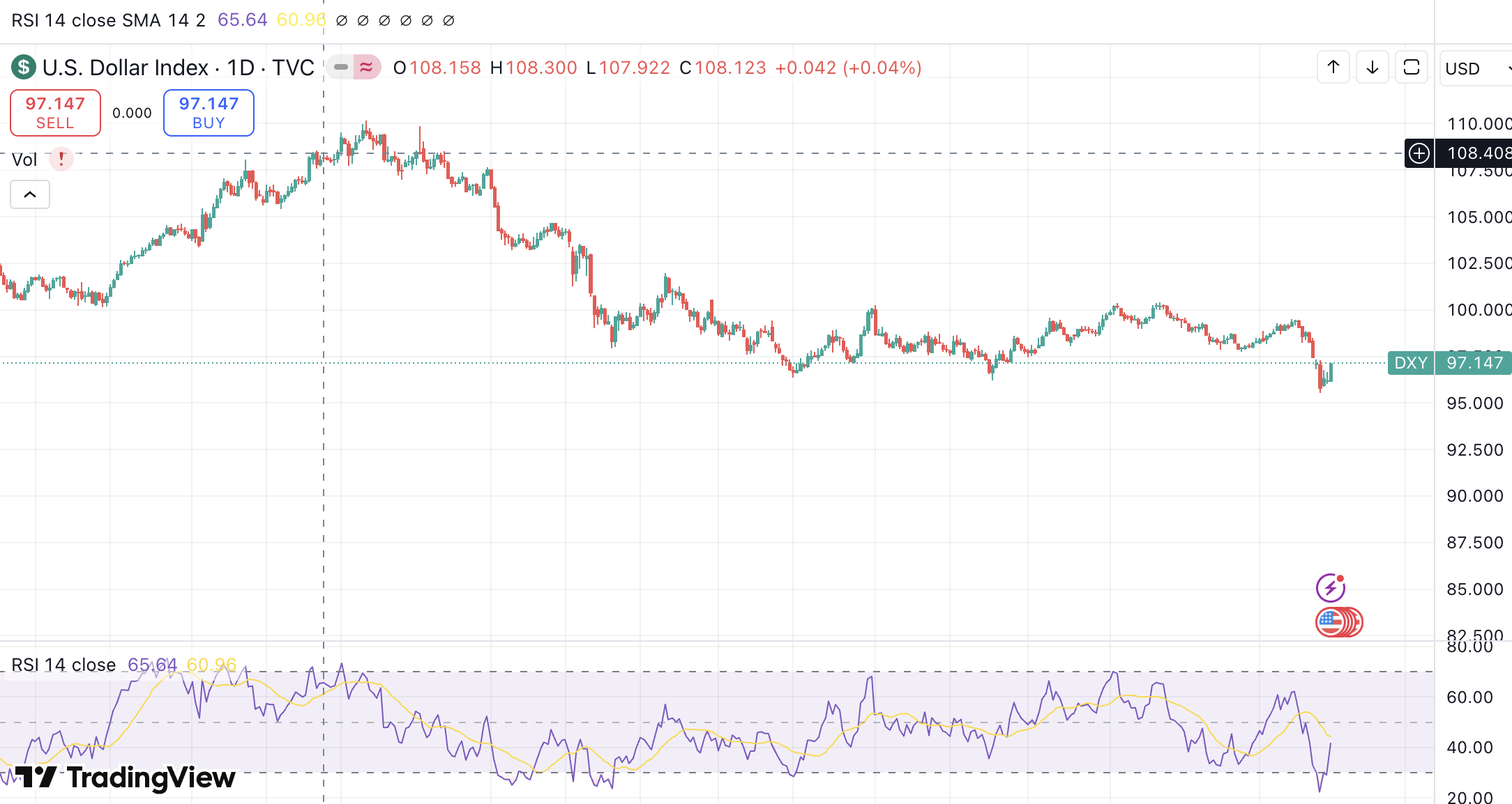 US Dollar Index (DXY) 1 day chart