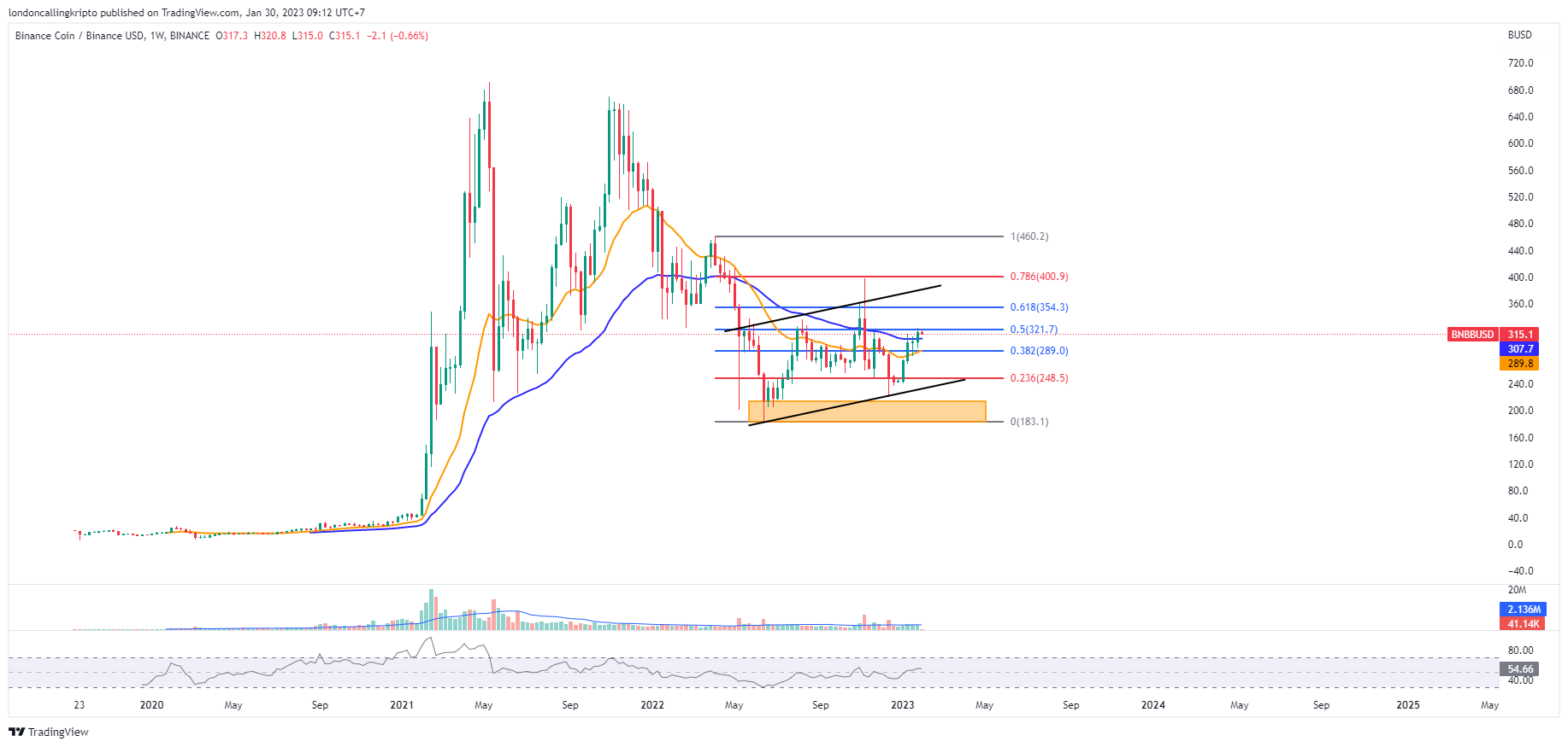 BNB/BUSD weekly chart Binance. Source: TradingView. By: Arli Fauzi.