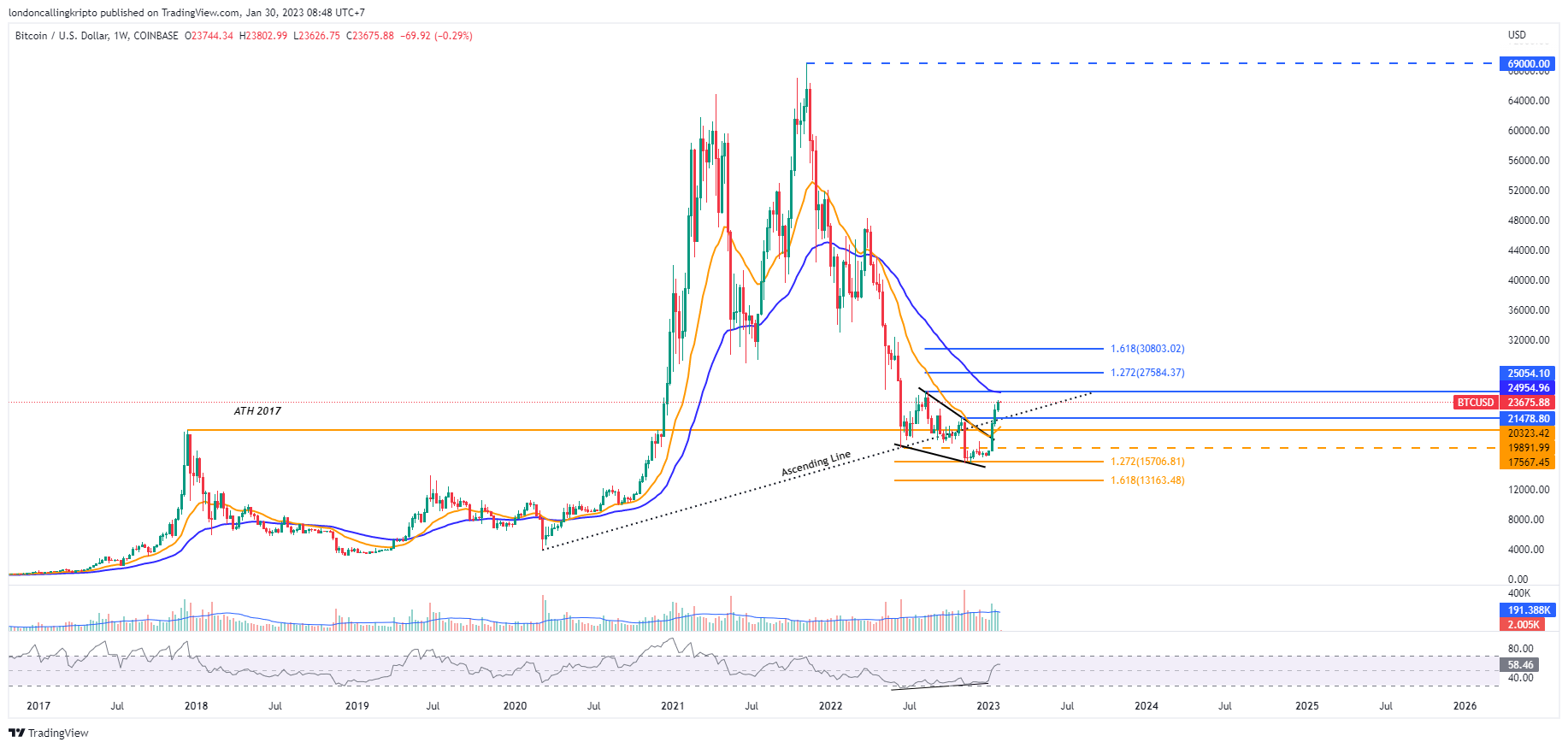 BTC/USD weekly chart Coinbase. Source: TradingView. By: Arli Fauzi.