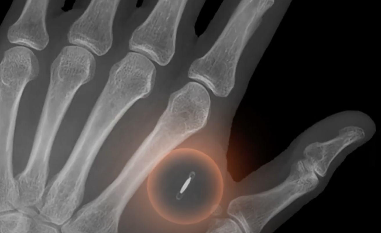 Gambar X-Ray chip Bitcoin yang ditanam di tangan F418. (sumber: YouTube).