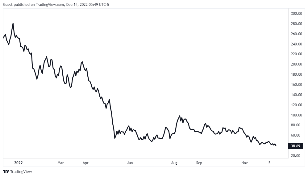 Portalkripto.com — Saham Coinbase Global (COIN) menyentuh titik terendah sepanjang sejarah alias all time low (ATL) pada 14 Desember 2022. Tercatat harga COIN turun 89% sejak di listing di bursa saham Nasdaq, Amerika Serikat, pada 14 April 2021.