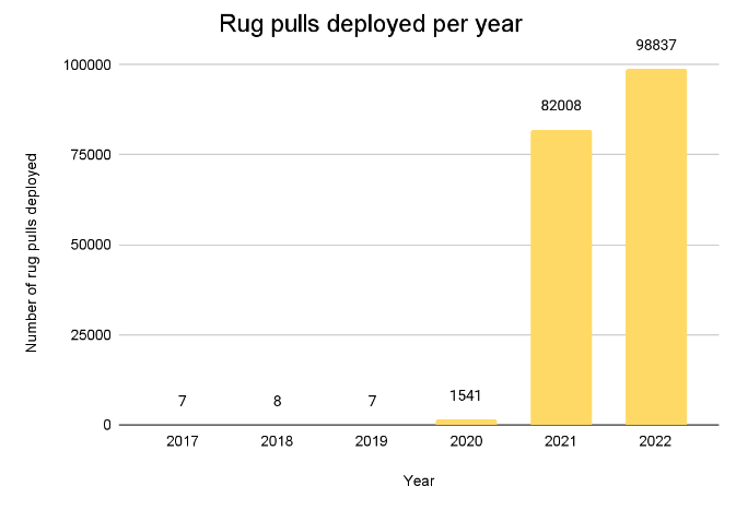 Data rugpull/scam per tahun di seluruh blockchain (sumber: Solidus Labs).