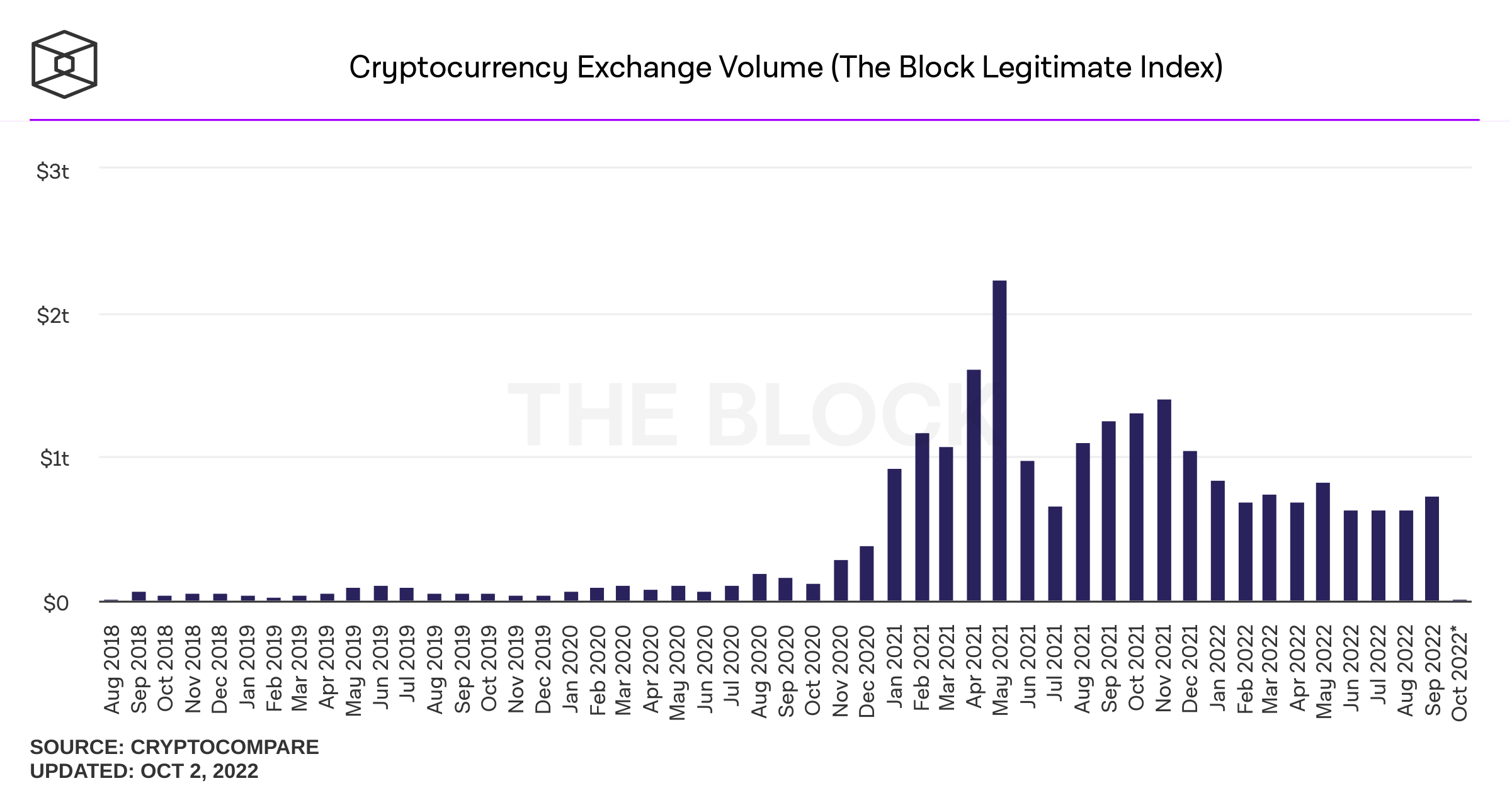 Menurut data dari The Block, volume perdagangan kripto September mencapai US$733 miliar. Sementara bulan sebelumnya tercatat Juni (US$629 miliar), Juli (US$633 miliar), dan Agustus (US$630 miliar).