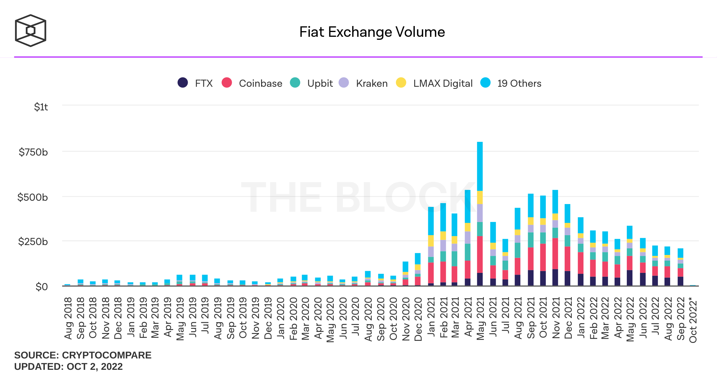 Volume exchange fiat turun lima bulan berturut-turut.